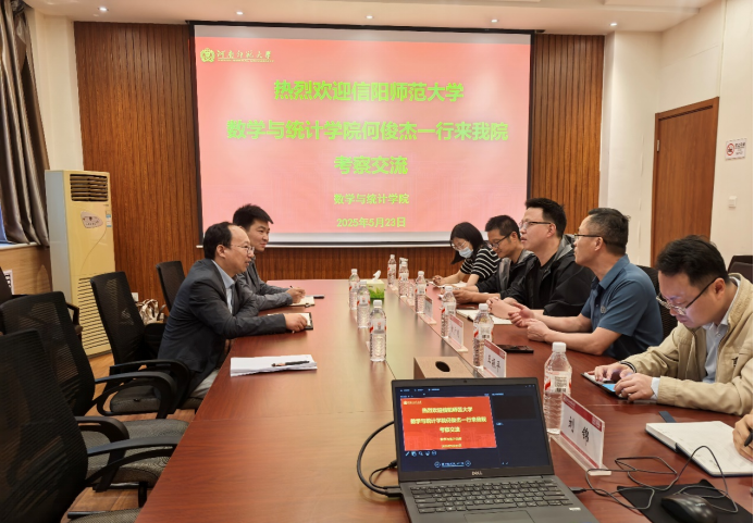 5月23日下午,数学与统计学院副院长何俊杰带领郑重、孙兰银两位教师赴河南师范大学数学与统计学院开展专项考察调研,重点围绕学科教学(数学)专业硕士培养体系构建、“田家炳杯”教学技能竞赛备赛机制以及公费师范生培养模式等核心育人工作进行深度交流。河南师范大学数学与统计学院院长黄广月、副院长马迎宾及数学教育中心王振平、刘锦、王允,教学秘书李海峰出席座谈。会议由马迎宾副院长主持。