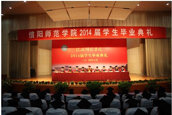 典礼在庄严雄浑的国歌声中拉开帷幕。首先,宋新宇教授代表数学学院学位委员会宣读信阳师范学院关于授予2014届毕业生学士学位的决定和获得学士学位的毕业生名单;接着,胡余旺院长为毕业生致词。他对2014届毕业生顺利完成学业表示真诚的祝贺、对为同学们的成长付出辛勤劳动的全体教职工以及支持同学们顺利完成学业的家长和朋友表示衷心的感谢。在为毕业生送上祝福的同时,胡院长还提出五点希望:一是要像理解极限一样理解人生。面对变数、挫折等动态实际,要把静态理想作为终极目标,不断调整自己,把人生最高境界作为最终理想,享受酸甜苦辣;二是要像理解相关性一样理解同事。在工作中待人处事要真心实意,言行一致;三是要像理解最值一样理解父母。不忘感恩,多关心父母,用行动来报答他们的养育和教导之恩;四是要像理解线性空间一样理解社会关系。学会处理好人际关系,保持理性思维,兼收并蓄,海纳百川;五是要诚实守信,脚踏实地,勤劳苦干,一步一个脚印,迈向成功。最后,胡院长深情地告诉同学们,母校永远是他们的家,遇到困难时就回家,让母校帮助排忧解难;感悟成功时就回家,与母校共喜同贺。胡院长情真意切的叮咛获得了同学们阵阵热烈的掌声。随后,2014届毕业生代表廖玉锋、在校学生代表李治远先后进行发言。