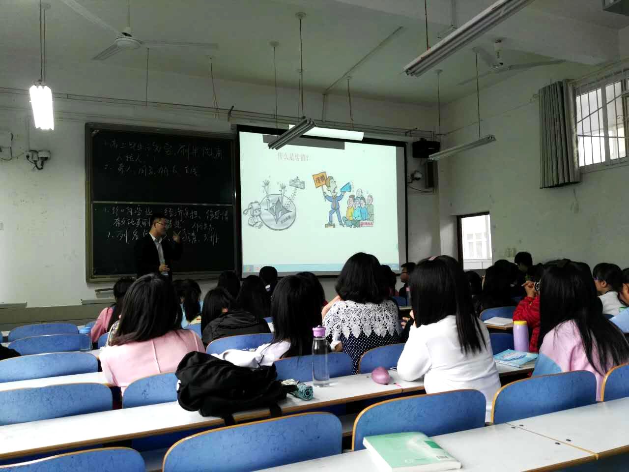 4月25日,刘勇华老师以“让传销远离校园”为主题在数学楼204教室为2015级管理科学班召开安全教育班会。他首先从数起大学生误入深受传销组织,深受其害危害的案例切入,着重强调传销的危害性,并向同学们深入讲解了“什么是传销”,“传销的手段”,使大家更加深刻清晰的了解、识别传销组织,刘勇华老师围绕该班学生的理想职业和兼职情况统计表,提醒大家做兼职时谨防被骗,并要求大家做到戒贪、戒盲目信任、戒不自知。