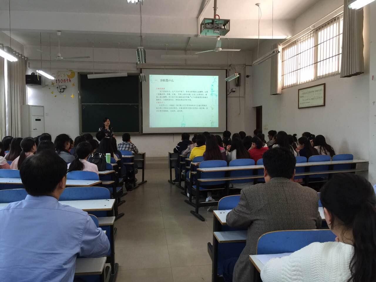 5月10日,谢艳丽老师就“大学生如何正确对待宗教信仰问题”在数学楼104为2013级信息与计算科学班开展主题班会。班会伊始,谢老师以宗教的起源与定义为切入点,通过播放幻灯片及有关宗教的视频,让同学们进一步深入了解宗教的发展历程,并结合时下热点,深入浅出地讲述了大学生与宗教、宗教与邪教的关系。她谈到,高校应重视学生“宗教热”的问题,呼吁学生明辨宗教与邪教,抵御境外宗教邪教对我国高校的渗透,倡导广大学子应树立正确的宗教观,科学的世界观,人生观和价值观。