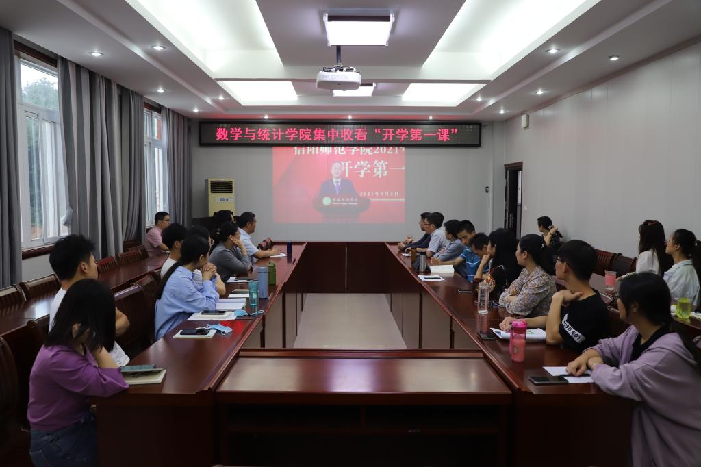 为贯彻落实河南省委和省教育厅疫情防控有关要求,持续深入开展“把灾难当教材 与祖国共成长”主题教育,按照信阳师范学院《关于做好2021-2022学年第一学期本科课程线上教学工作的通知》要求,我院96日上午8001000通过超星网络平台组织全院师生同上《开学第一课》。学院领导班子成员、系(副)主任、中心(副)主任、教研室主任、班主任等老师在数学楼315会议室集中观看了开学第一课。