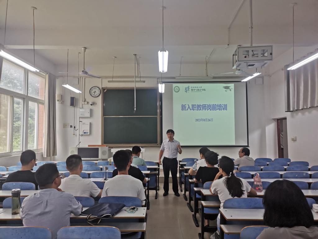 为使2023年新入职教师快速提高教学水平,不断提高人才培养质量,数学与统计学院于8月26日-8月27日举行新入职教师岗前培训系列活动。活动分为三部分:1.新入职博士试讲一节课;2.教学行家进行示范课教学;3.老教师教学感悟报告会。
