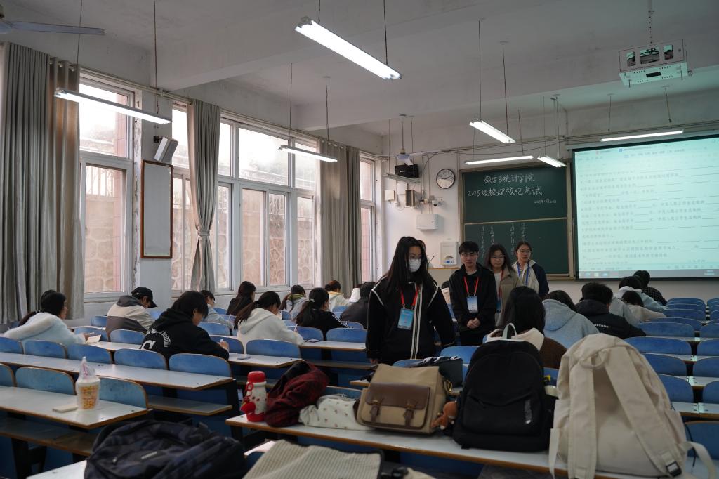 为引导2025级新生尽快锚定大学生活的行为准则,厚植规则意识与自律素养,数学与统计学院于11月30日在102、103教室组织开展新生校规校纪学习考试,2025级新生全体参与,部分学生干部承担监考、巡考工作。