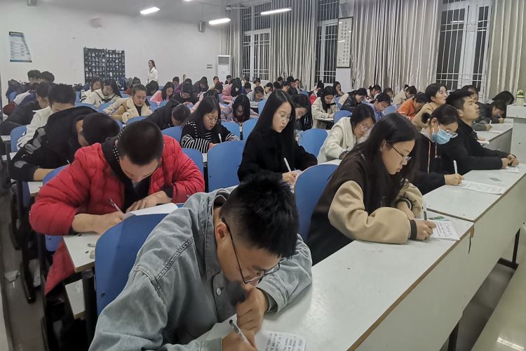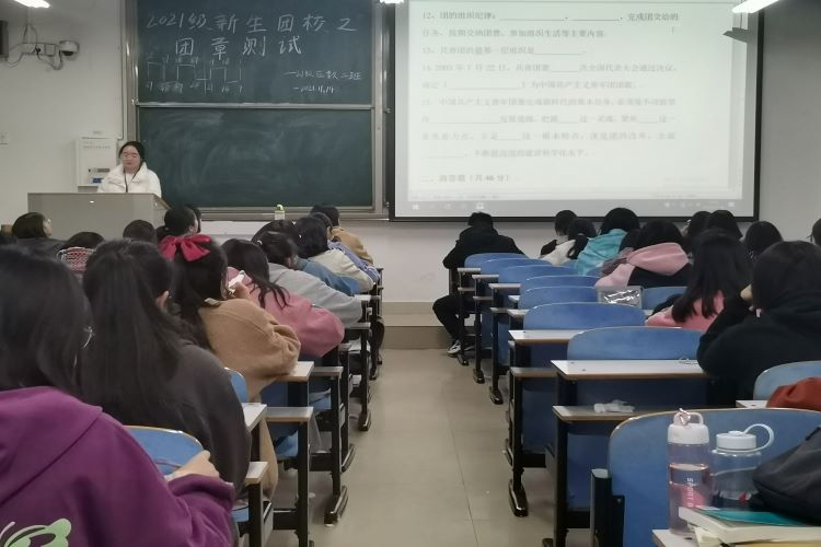 11月14日晚,数学与统计学院在数学院固定教室举行2021级新生团章考试,2021级全体新生共同参加本次考试。