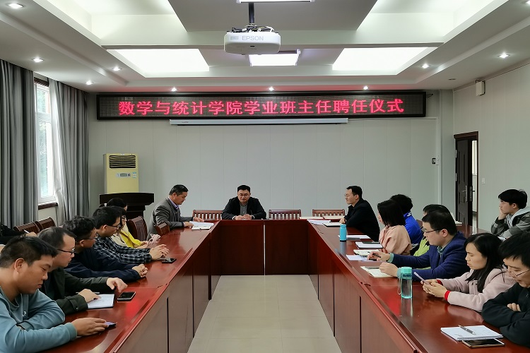 为落实全国教育大会精神,发挥教师在学生学业教育中的重要作用,切实形成“全员育人、全方位育人、全过程育人”的良好氛围。数学与统计学院于10月26日下午在数学楼315会议室举行学业班主任聘任仪式。学院党委书记洪亮、副院长韩英波、党委副书记刘丰铭、全体受聘班主任、各年级辅导员、学院主要学生干部代表参加仪式。