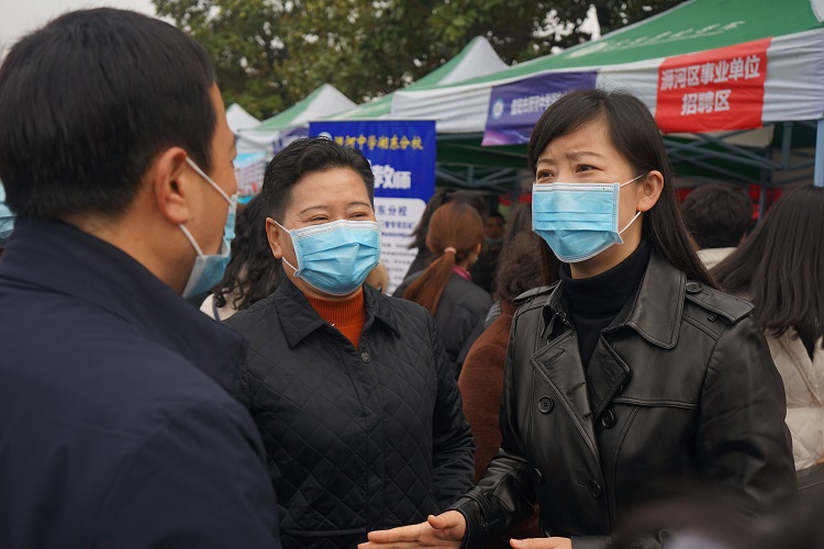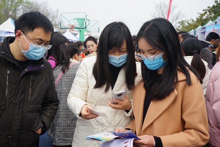 3月20日上午,“信阳市招才引智专项活动“——2021届毕业生专场招聘活动在我校西操场举行。数学与统计学院积极筹备并及时组织学院2021届毕业生参加活动,学院党委书记王娟、党委副书记洪亮、毕业班主任张盛祝、谢艳丽、就业秘书杨园园莅临活动进行就业指导。