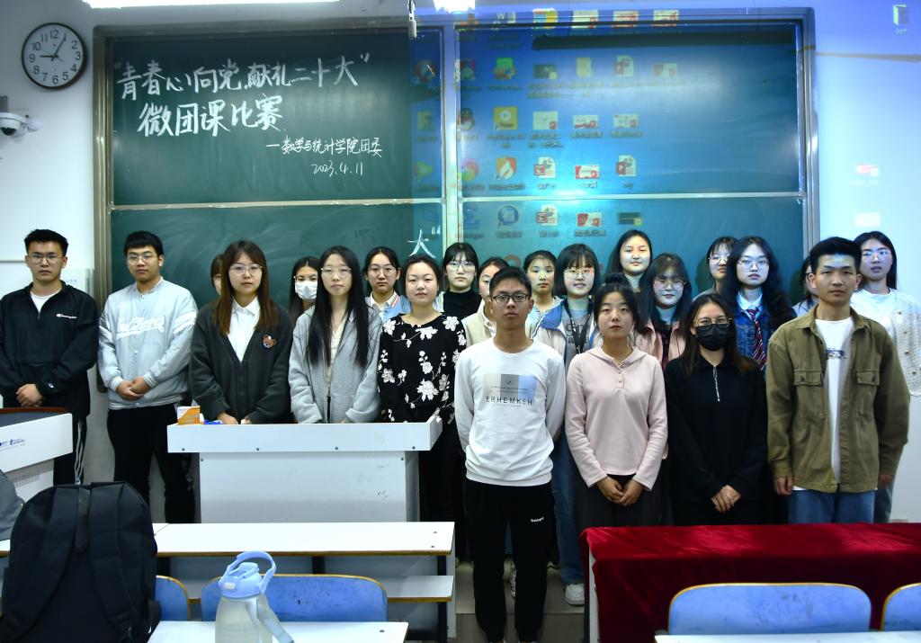 为学习贯彻党的二十大精神,坚持以习近平新时代中国特色社会主义思想武装头脑、教育青年,引导青年学生深刻领悟“两个确立”的决定性意义,增强“四个意识”、坚定“四个自信”、做到“两个维护”,争做有理想、敢担当、能吃苦、肯奋斗的新时代好青年,数学与统计学院于4月11日在数学楼102教室举办“青春心向党,献礼二十大”微团课大赛。