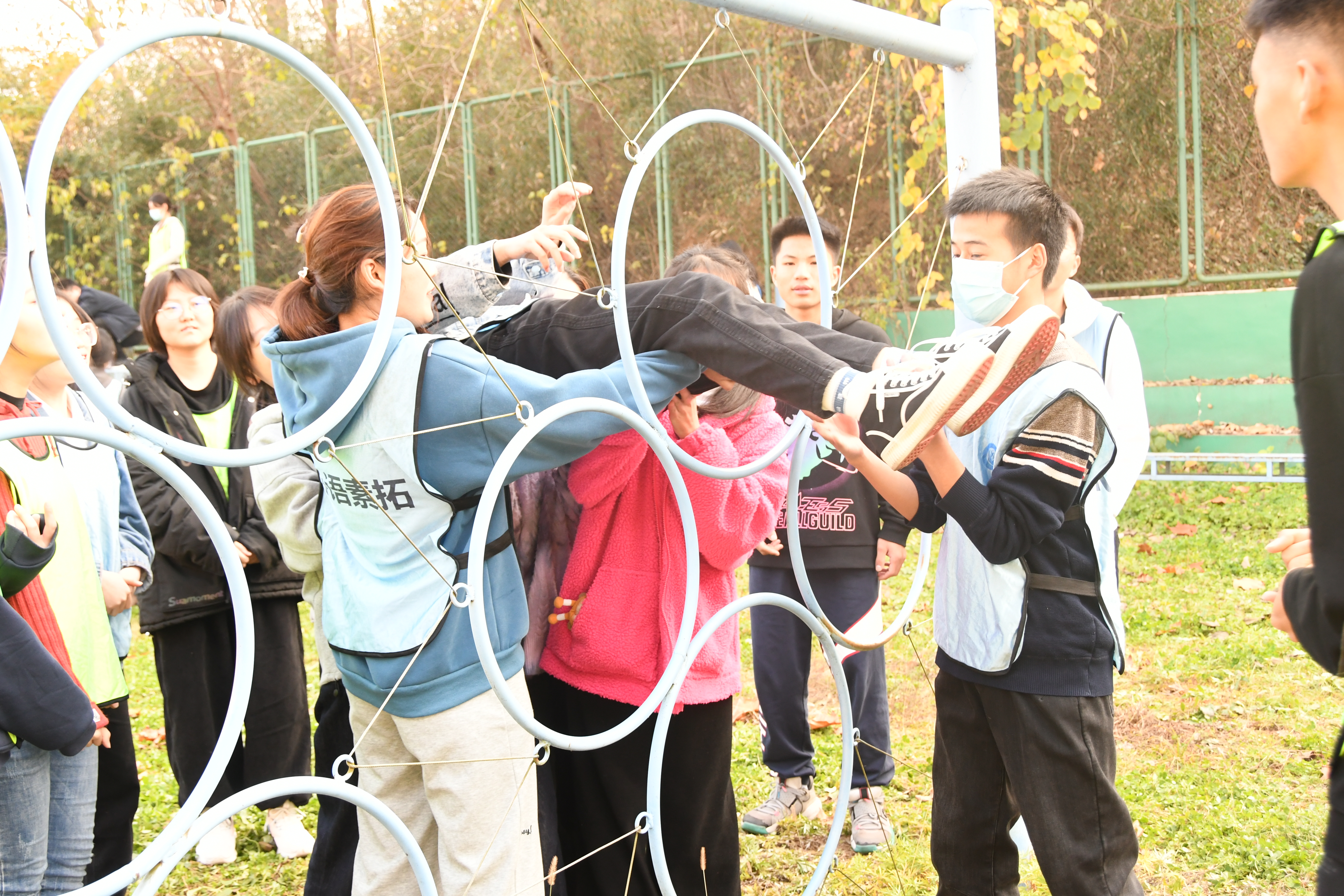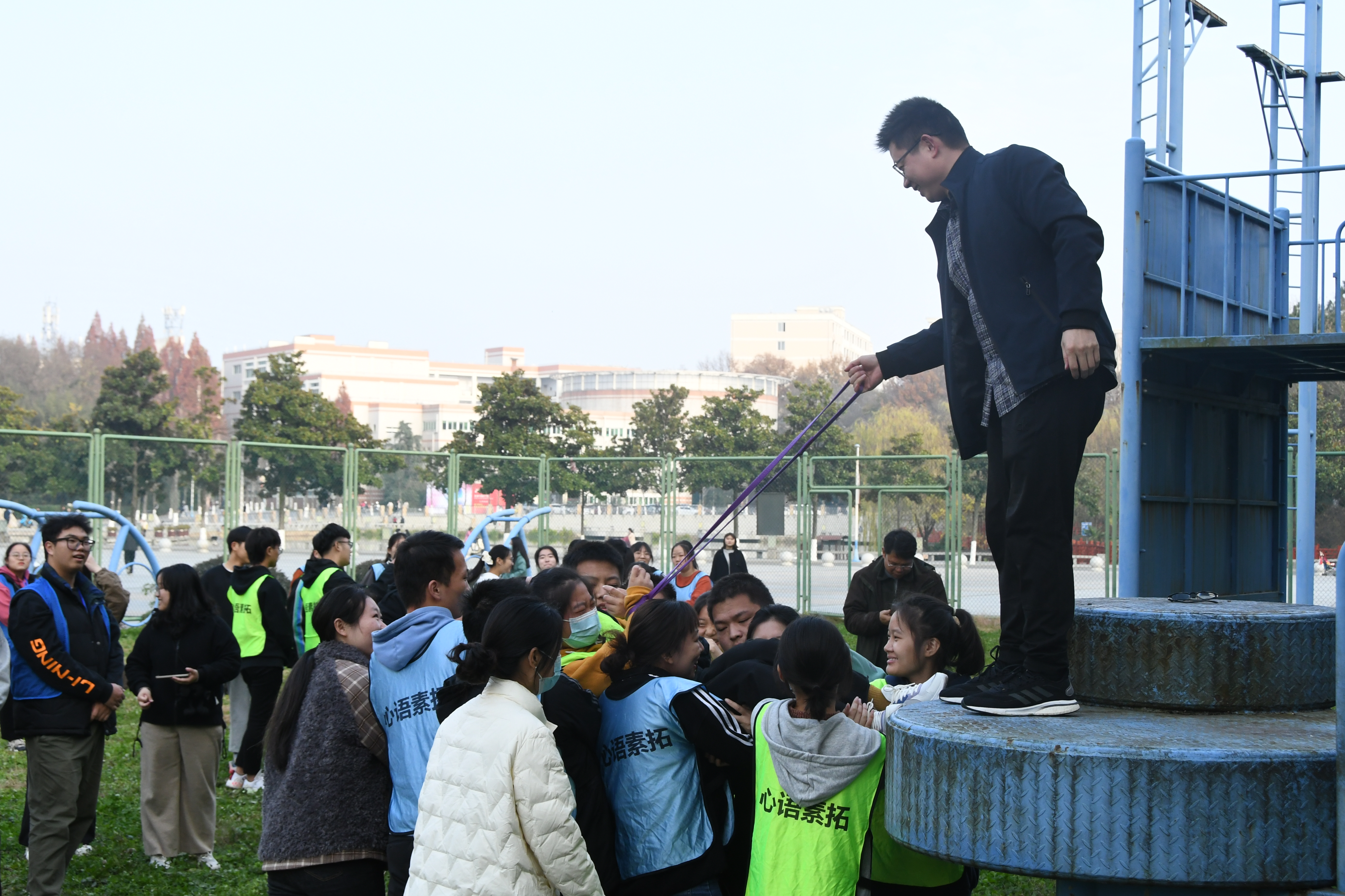 为提高学生心理素质,培养学生良好的团队精神和积极进取的人生态度,11月27日, 数学与统计学院学生在心语拓展园进行心理素质拓展训练。