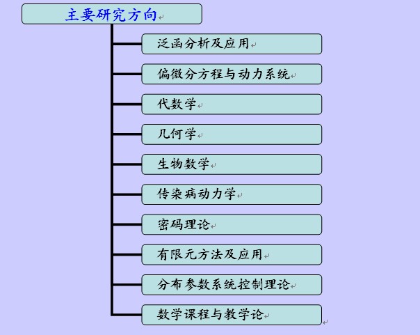 本方向主要有数学课程论与数学教学论两个子方向,前者侧重于教学内容的研究,理论性较强,后者侧重于对教育教学方法的研究,实证性较强。本方向在数学课程论、数学教学论、数学文化普及等方面取得了一些成绩。