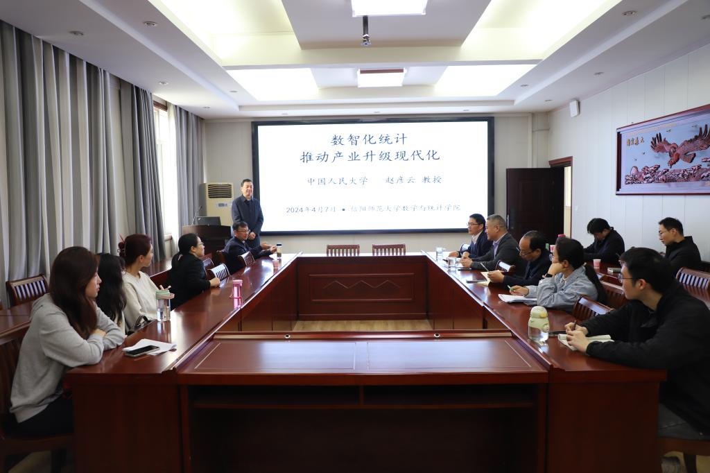 4月7日上午,应数学与统计学院邀请,中国人民大学赵彦云教授在数学楼315会议室做了题为《数智化统计推动产业升级现代化》的学术报告。报告会由院长蔡礼明教授主持,副院长韩英波教授、部分老师及研究生聆听了此次报告。