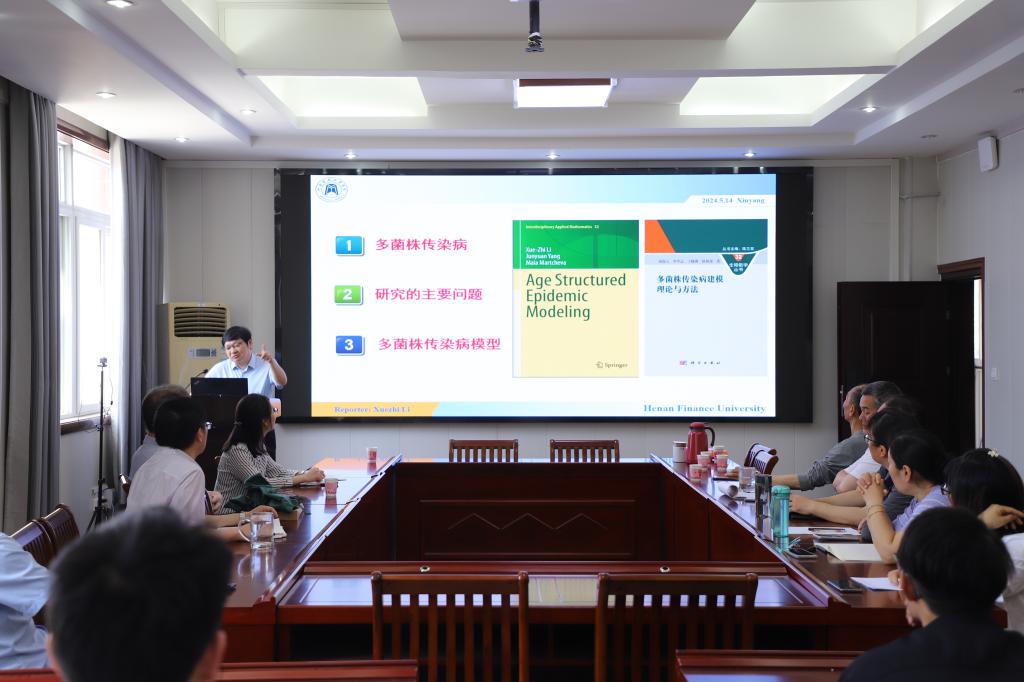 5月14日上午,应数学与统计学院邀请,河南财政金融学院李学志教授在数学楼315会议室为我校师生做了题为“多菌株传染病动力学建模与研究”的学术报告,报告会由数学与统计学院王霞教授主持,院长蔡礼明教授、副院长韩英波教授及部分教师和研究生聆听了报告。