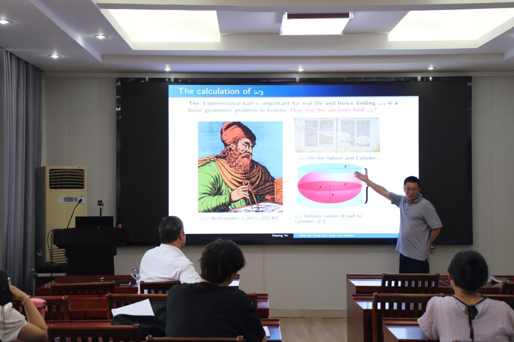 此次报告,Ye 教授主要就牟合方盖的前世和今生两大部分进行了讲述。首先,Ye 教授讲述了牟合方盖的早期中外研究进展,并特别提到在中国数学历史上,魏晋时期的著名数学家刘辉和南北朝时期数学家祖冲之和祖暅之也对其开展研究并得出三维球体体积的精确计算公式。这在中国数学历史上是一个伟大的开拓性成果。