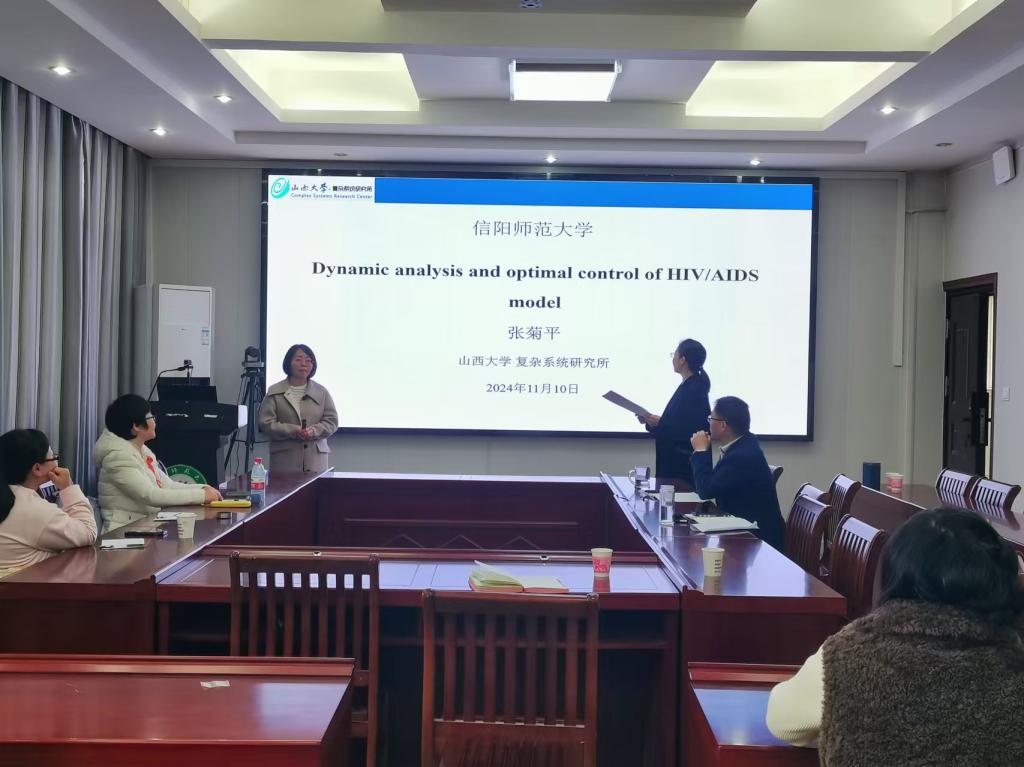 11月10日上午,应数学与统计学院邀请,山西大学张菊平教授在数学楼315会议室为我校师生作了题为“Dynamic analysis and optimal control of HIV/AIDS model”的学术报告。报告由副院长王霞教授主持,生物数学方向的老师及研究生聆听了此次报告。