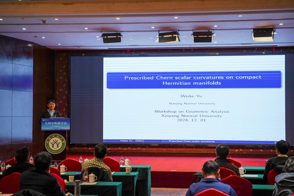 虞教授在这次演讲中,回顾了在紧致Hermitian流形上的预定Chern数量曲率问题。报告了他们最近关于在具有负Gauduchon degree度的紧致Kaehler曲面上的预定符号变化函数的工作。(曾凡奇供稿,韩英波审核)