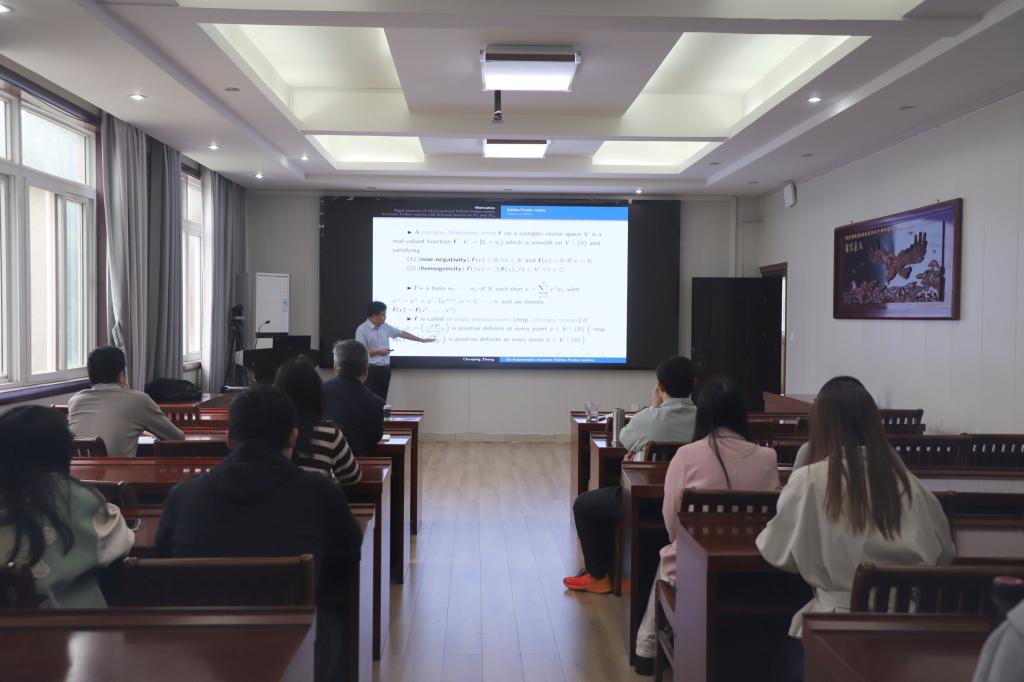 1016日上午,应数学与统计学院邀请,厦门大学钟春平教授在学院315会议室作了题为“On holomorphic invariant Kähler-Finsler metrics”的报告。报告会由数学与统计学院院长蔡礼明教授主持,部分教师和研究生参加了此次报告会。