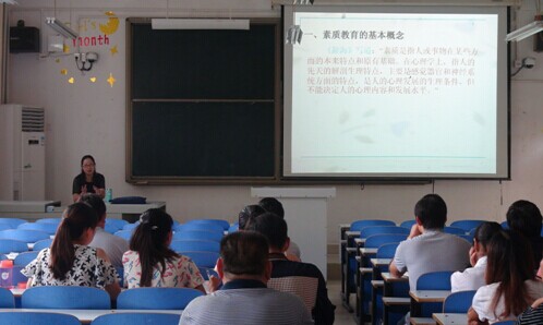 在报告中,方丙丽指出,素质是指人或事物在某些方面的本来特点和原有基,素质教育的基础是“成为人”的教育,而不是“成年人”的教育,并且学习和思维能力是成人的基础;素质教育的目标是培养成功的人格。最后方老师简单的介绍了近年来国家素质教育的改革,特别是在考试制度、考试内容、录取方式上的改革.通过本次报告,学员深深的体会到素质教育在教育教学中的重要性。