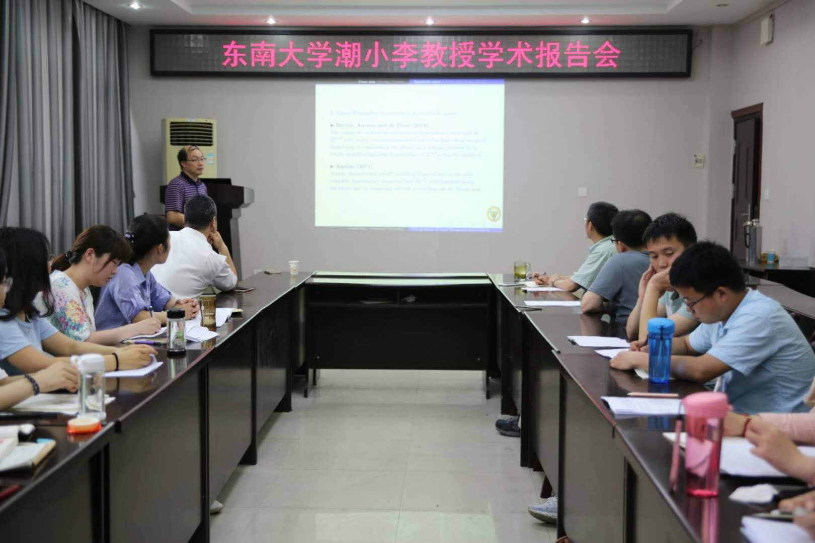 2018年5月19日下午,应数学与统计学院邀请,东南大学潮小李教授在数学学院学术报告厅作了题为“The geometry of linear Weingarten hypersurfaces”的学术报告。报告会由数学与统计学院副院长蔡礼明教授主持,该院部分教师和研究生聆听了此次报告。