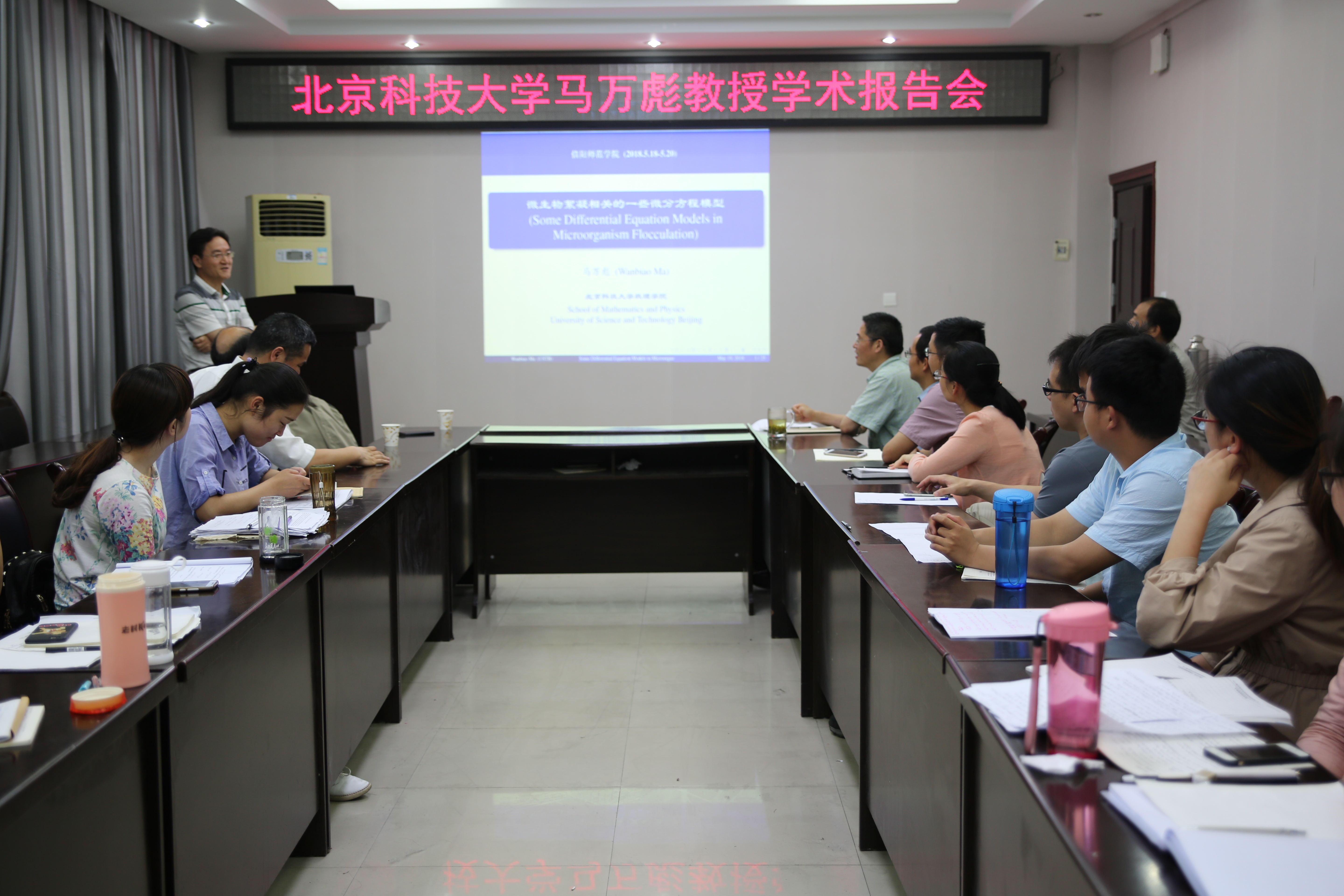 2018年5月20日下午,应数学与统计学院邀请,北京科技大学马万彪教授在数学学院学术报告厅作了题为“Some Differential Equation Models in Microorganism Flocculation”的学术报告。报告会由数学与统计学院副院长蔡礼明教授主持,该院部分青年教师和研究生聆听了此次报告。