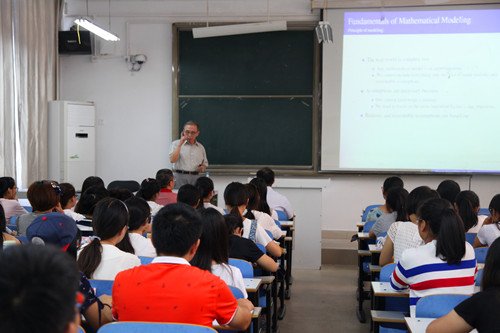 报告会上,李佳教授以幽默通俗的语言讲述了数学建模在生活中的应用,简要介绍了随机模型、计算模型、确定性模型――动力系统等三种模型类型,并通过具体模型的建立,详细讲述了如何去建立一个数学模型。他谈到,数学模型是一种近似替代,构建数学模型需要在能力范围内跟随平衡规律,尽可能地多考虑可变因素,并反复修正,不断使之准确化、复杂化。李教授的报告获得了师生一致好评,现场掌声迭起。