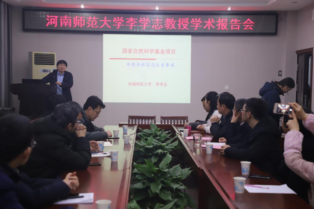 113日上午,应数学与统计学院邀请,河南师范大学副校长李学志教授在学院学术报告厅作了题为“国家自然科学基金项目申请书撰写及注意事项”的报告,报告会由科技处处长罗永松教授主持,数学与统计学院申报2020年国家自然科学基金的老师和部分研究生聆听了此次报告