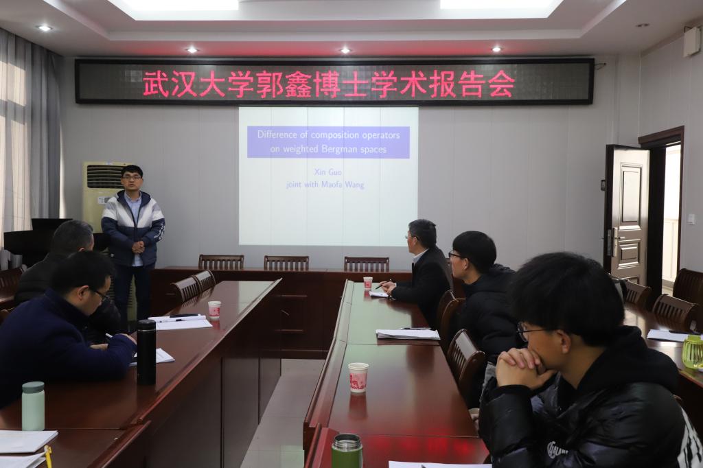 12月11日,应数学与统计学院邀请,武汉大学郭鑫博士在数学与统计学院学术报告厅作了一场题为《Difference of composition operators on weighted Bergman spaces》的学术报告。报告会由数学与统计学院副院长蔡礼明教授主持,学院部分老师,研究生和该领域相关博士聆听了此次报告。