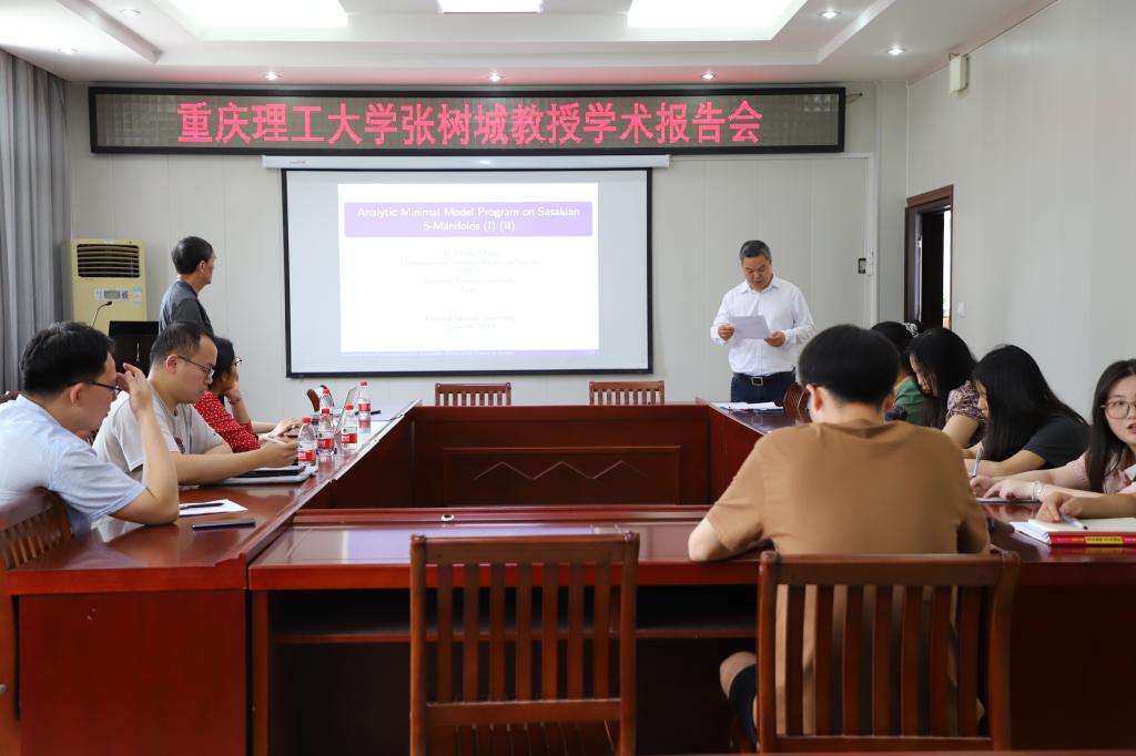 6月14日下午,应数学与统计学院邀请,重庆理工大学张树城教授在学院报告厅作了题为“Analytic Minimal Model Program in a Sasakian Five-Manifold”的报告。报告会由数学与统计学院副院长韩英波教授主持,几何学团队教师和研究生参加了此次报告会。