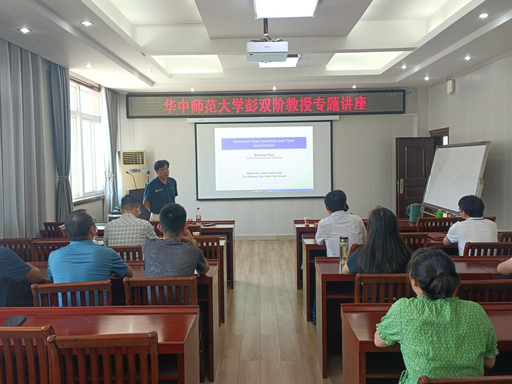 应数学与统计学院邀请,华中师范大学彭双阶教授于819日下午在数学楼315报告厅进行了系列专题讲座,主题为“I: Pohozaev type identities and their applications. IIConcentrated solutions to nonlinear Schrodinger equations with very degenerate potentials. 讲座由副校长王娟主持,学院领导、部分专业教师和研究生参加了此次讲座。