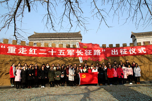 谢艳丽带领新党员面对鲜红的党旗庄严宣誓,他们以意气风发的姿态、铿锵有力的誓言表达了自己对党的热爱和忠诚。随后,正式党员代表2013级数学与应用数学班马寅栋、新党员代表2014级数学与应用数学班张建文依次进行发言。谢艳丽希望学生党员们能够不辜负组织的期望,牢记党的宗旨,严格要求自己,在生活学习中时刻发挥党员先进模范作用,以实际行动为党旗增辉、为校添彩,不辜负中国共产党这个光荣的称号。随后,党员们踏着革命先烈的足迹,重走长征之路,领略革命历史背后的鲜活与生动。