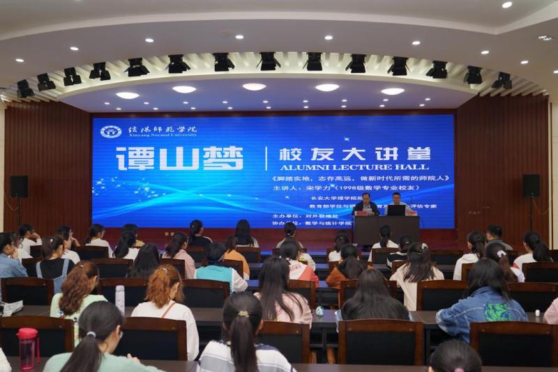 5月15日上午,由对外联络处主办、数学与统计学院协办的“谭山梦”校友大讲堂第25期在艺术楼一楼报告厅举行。我校1998级数学专业校友,长安大学理学院院长、教授、博士生导师,国家科学技术奖励评审专家,教育部学位与研究生教育发展中心评估专家宋学力应邀主讲校友大讲堂,200多名师生聆听了报告。报告会由对外联络处处长耿劲松主持。