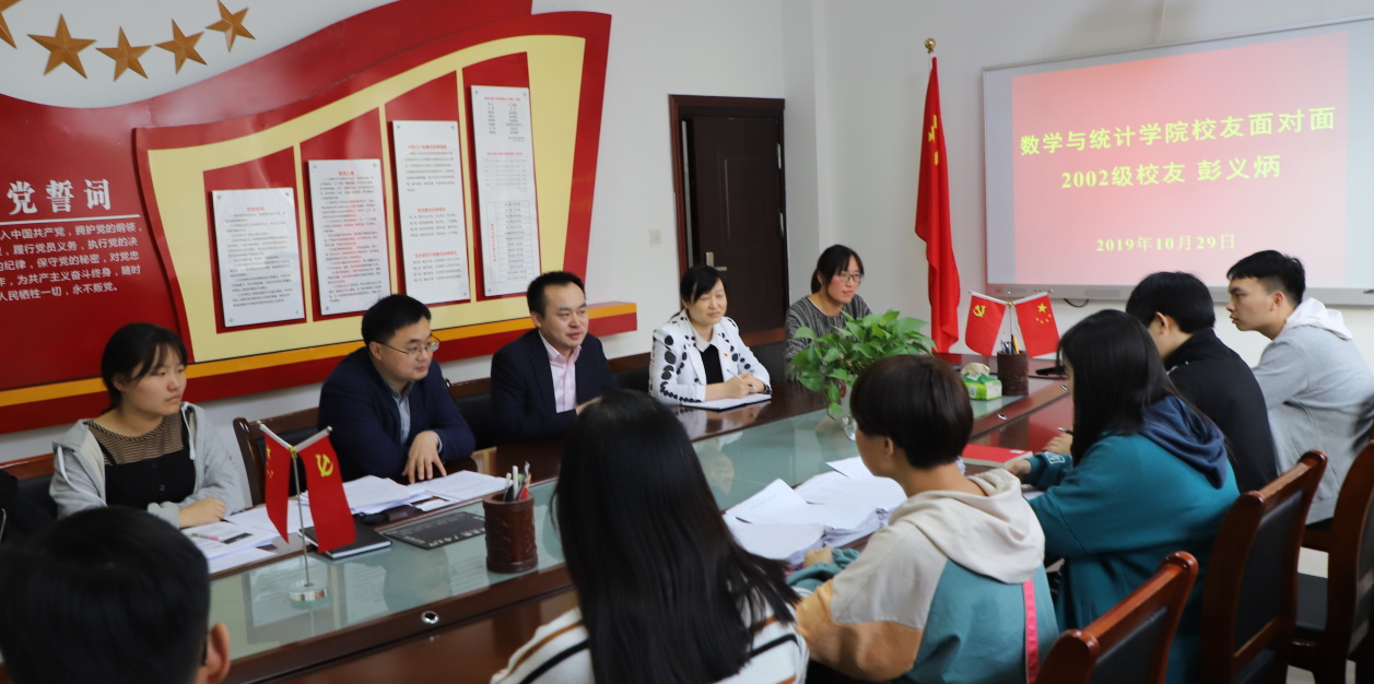 10月29日,我院2002级优秀校友彭义炳回校与老师同学交流经验,副书记洪亮和来交流的同学参加了此次交流会。