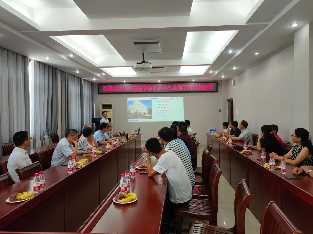 8月10日下午,我院1995级数学教育本科班20余位校友齐聚一堂,举行毕业二十年座谈会。院长胡余旺、副院长柳合龙、副院长蔡礼明、数学研究所副所长周学勇、副院长陈越奋和教师代表裴惠生、张盛祝等老师参加了此次座谈会。
