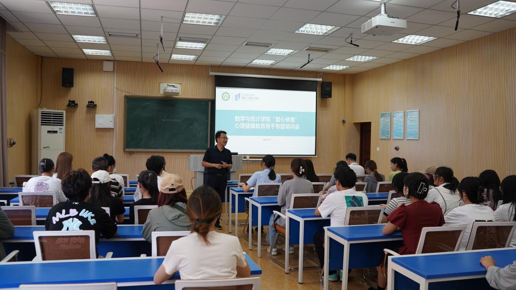 5月14日,为进一步加强我院心理健康教育工作,夯实四级工作网络体系,数学与统计学院举办“爱心使者”心理健康教育学生骨干专题培训会。校党委学生工作部副部长、学生处副处长兼大学生心理健康教育中心主任李贵杰应邀来我院作专题辅导报告。学院党委副书记刘丰铭、专职辅导员、各班班长和心理委员参加会议。