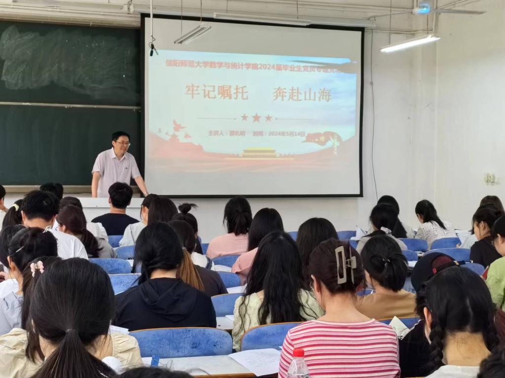 潮起海天阔,扬帆正当时。为引导2024届毕业生党员在学思践悟中坚定理想信念,在实干实绩中锤炼党性修养,5月14日下午,数学与统计学院院长蔡礼明为学院2024届毕业生党员送上最后一堂党课。