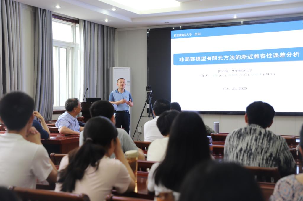 4月21日下午,应数学与统计学院邀请,华中师范大学阴小波教授在数学楼315会议室作了题为《非局部模型有限元方法的渐近兼容性误差分析》的学术报告。报告会由院长蔡礼明教授主持,部分老师及研究生聆听了此次报告。