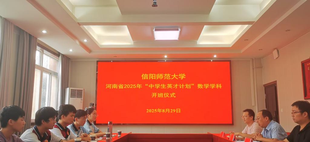 8月29日,信阳师范大学2025年河南省“中学生英才计划” 数学学科开班仪式及师生见面会在我院举行。数学与统计学院副院长何俊杰,导师团队成员魏明权、严辉银和淮滨高级中学5名学生共同参加开班仪式,开班仪式由何俊杰主持。