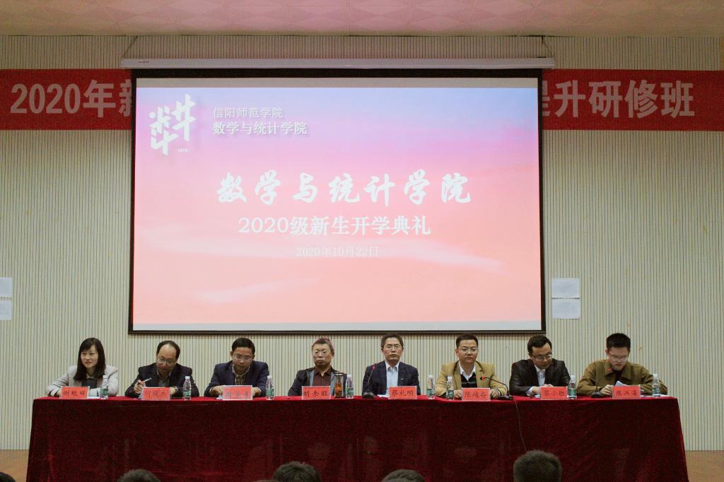 10月22日晚,我院于人文楼报告厅举办2020届新生开学典礼暨第十三届从师技能月活动开幕仪式。数学与统计学院院长胡余旺,副院长蔡礼明、陈越奋,数学研究所副所长周学勇,党委秘书谢艳丽,教师代表黎小胜,新生班主任何俊杰、陈兴海出席本次典礼。典礼由副院长陈越奋主持。