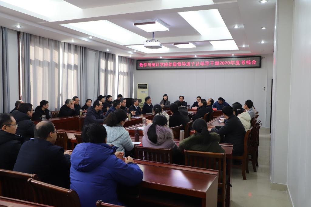 为全面落实《党政领导干部考核工作条例》,配合学校处级领导班子和处级领导干部2020年度考核工作方案。数学与统计学院于1月15日在数学楼315召开数学与统计学院处级领导班子和处级领导干部2020年度考核大会。信阳师范学院处级领导班子和处级领导干部2020年度考核工作领导小组第四考核组组长刘守义及考核组成员郭立场、冀鹏参与了此次会议。
