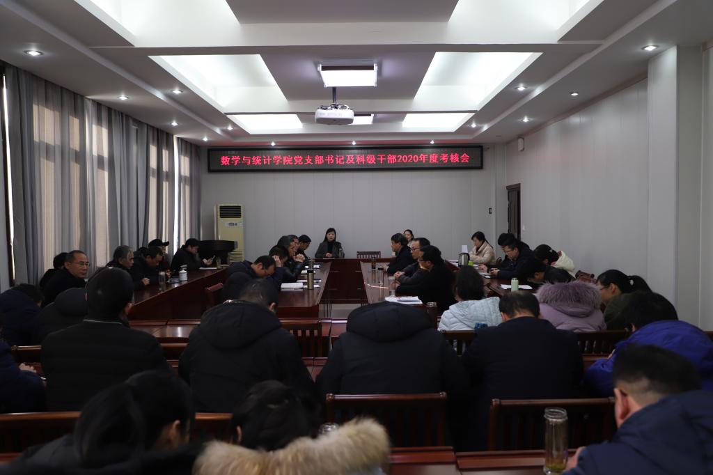 为全面落实《党政领导干部考核工作条例》,教育引导干部担当作为、干事创业,建设符合新时代标准的高素质干部队伍,数学与统计学院于1月15日召开党支部书记及科级干部2020年度述职考核大会。数学与统计学院全体教师参加了本次大会。