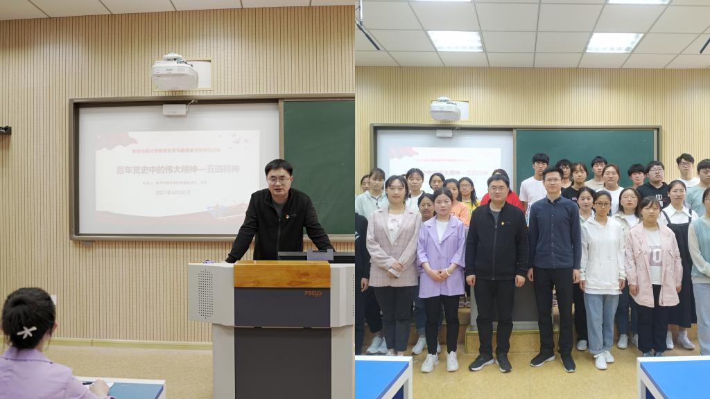 4月30日,数学与统计学院在507教室举行“百年党史中的伟大精神—五四精神”主题学习交流会,党委副书记洪亮与50余名青年党员、团员代表共同参与学习交流活动。