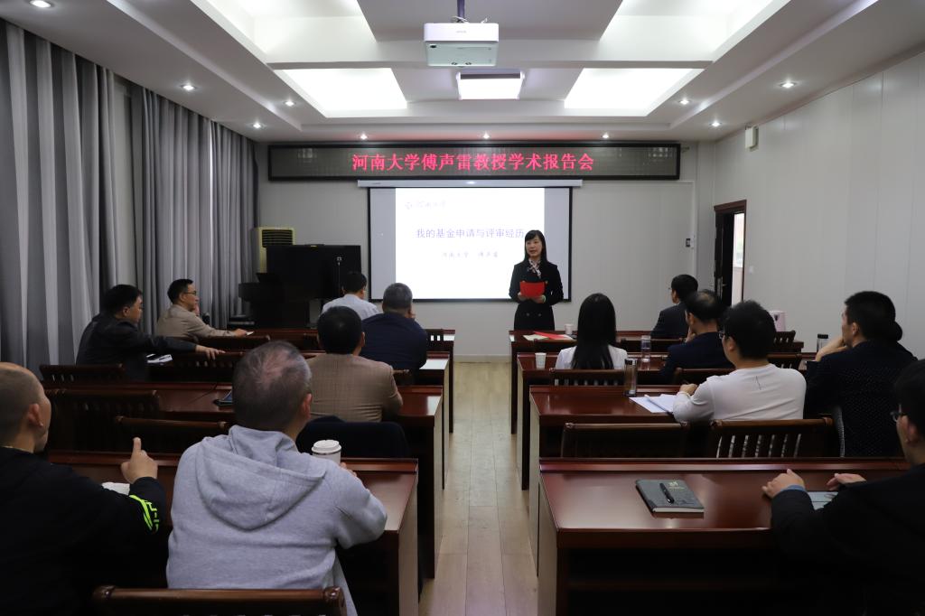 10月24日下午,应数学与统计学院邀请,河南大学学术副校长傅声雷教授在数学楼315会议室作了题为《基金申请和评审经历》的学术报告。副校长王娟,数学学院院长蔡礼明、党委书记洪亮,副院长韩英波及我校部分教师、研究生聆听了此次报告。报告会由王娟教授主持。