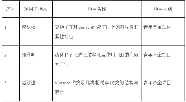 国家自然科学基金委员会近日公布了2023年度国家自然科学基金获资助项目名单,截止8月24日,数学与统计学院获批3项。该成绩是学校、学院和项目申请人共同努力的结果。