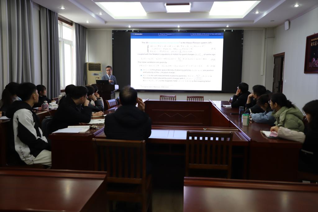 12月1日下午,应数学与统计学院邀请,华中科技大学张显文教授在数学与统计学院315会议室做了一场题为“Moment propagation of the plasma-charge model with a time-varying magnetic field”的学术报告。报告会由数学与统计学院院长蔡礼明教授主持,部分老师和研究生聆听了此次报告。