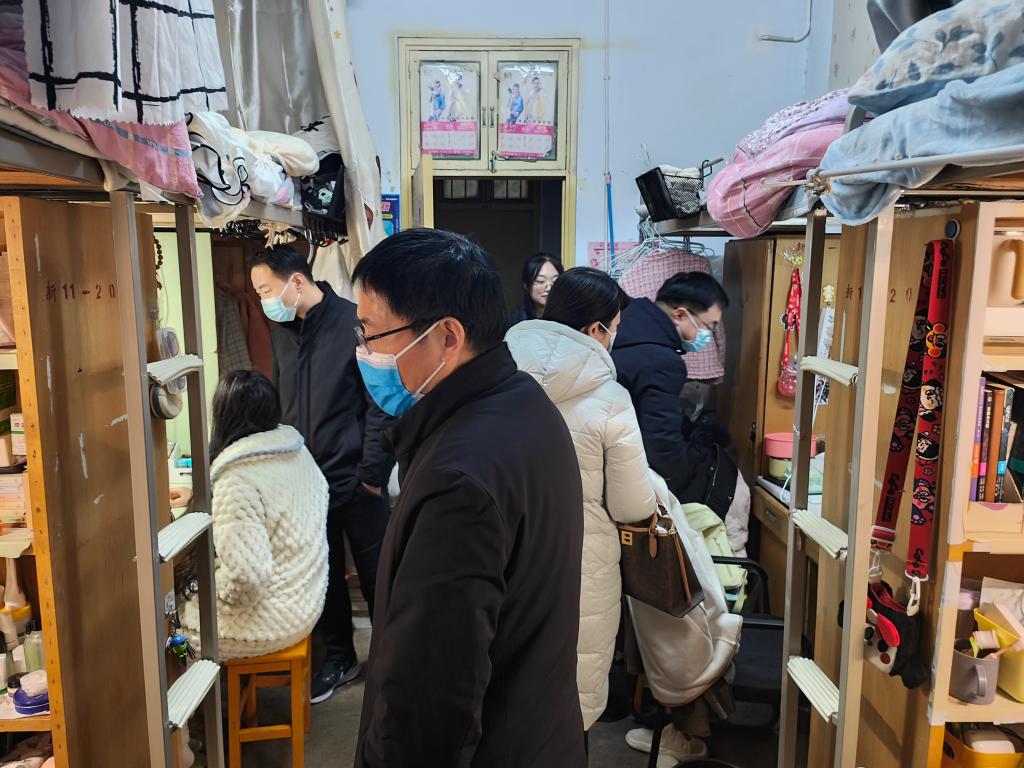 在巡查走访过程中,学院领导深入各个楼栋的学生宿舍,重点关注寝室安全隐患问题。他们还积极了解学生思想动态,关切学生身体和心理健康。对学习、生活、考研、就业等方面进行指导。随后,老师们与学生进行了深入交流,了解他们的学习、生活情况,鼓励他们坚定考研信心,缓解备考压力。最后,他们还针对学生反映的问题和建议,及时给予回应和解答。