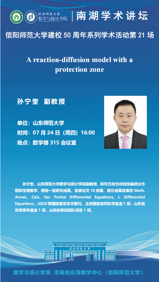 庆建校50周年之南湖讲坛:山东师范大学孙宁奎副教授——A reaction-diffusion model with a protection zone