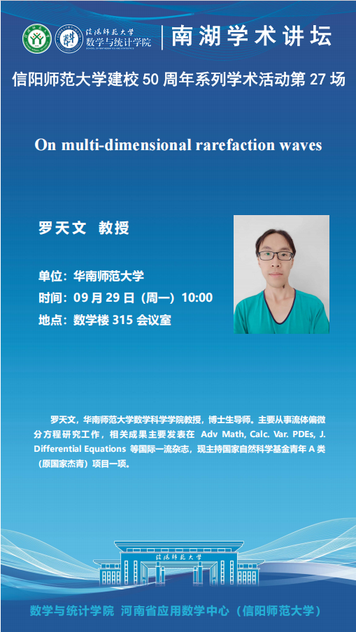 庆建校50周年之南湖讲坛:华南师范大学罗天文教授——On multi-dimensional rarefaction waves