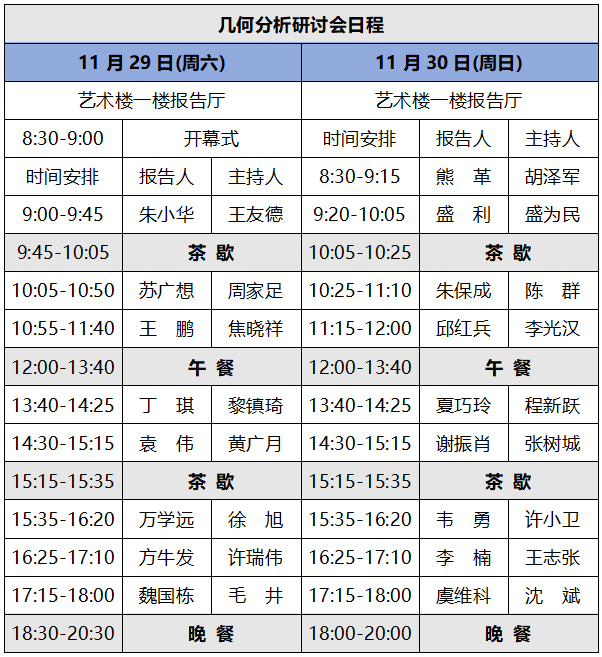 为了促进几何分析及相关领域的学术交流,我们将于2025年11月28日-12月1日在河南省信阳师范大学举办几何分析研讨会,11月28日报到(信阳中乐百花酒店),11月29日-30日会议报告,12月1日离开会议。会议将探讨几何分析及相关领域最新前沿问题的进展。希望会议能促进专家、青年研究者和研究生的交流与合作。